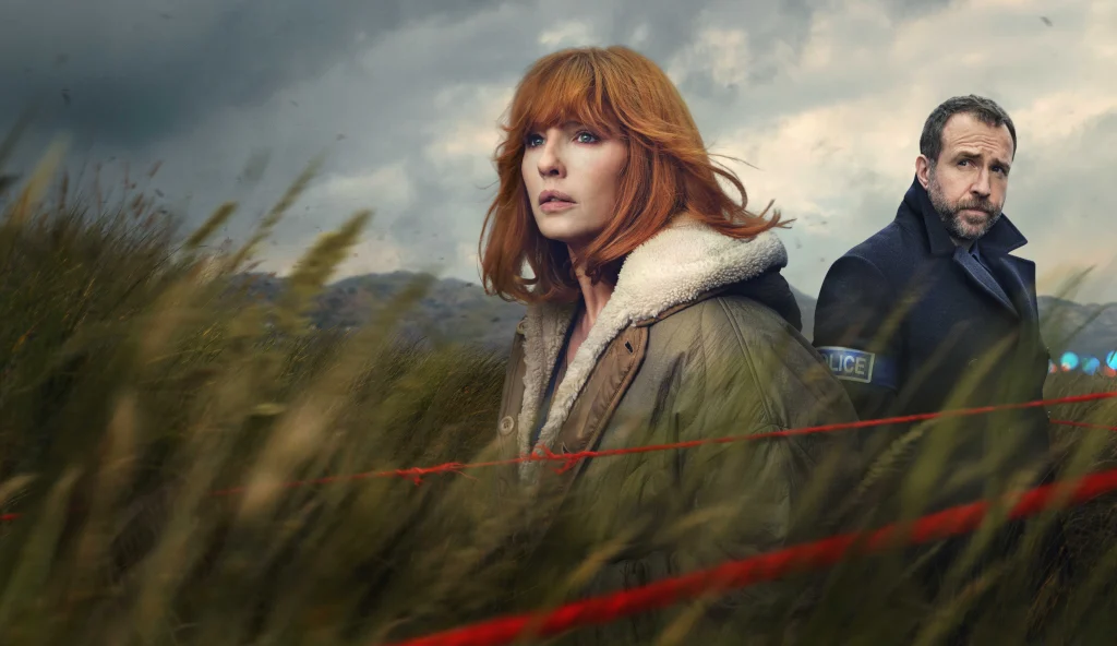 Kelly Reilly leads as Jackie, a former detective turned teacher who carries the weight of an unresolved cold case and an unmistakable air of exhaustion. When the body of one of her pupils is found in a ditch, the past comes rushing back, along with Rafe Spall as her former colleague, Eric Bull.