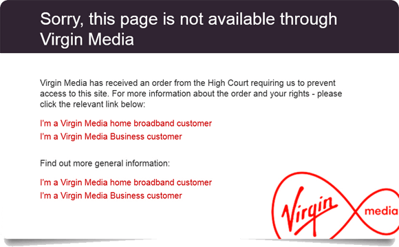 Virgin Media prides itself on being a responsible ISP and will block websites and servers when ordered to do so by the Courts. As Virgin Media customers, you may have the right to apply to the High Court to vary or discharge the Court Orders below if you are affected by the blocks which have been imposed.
